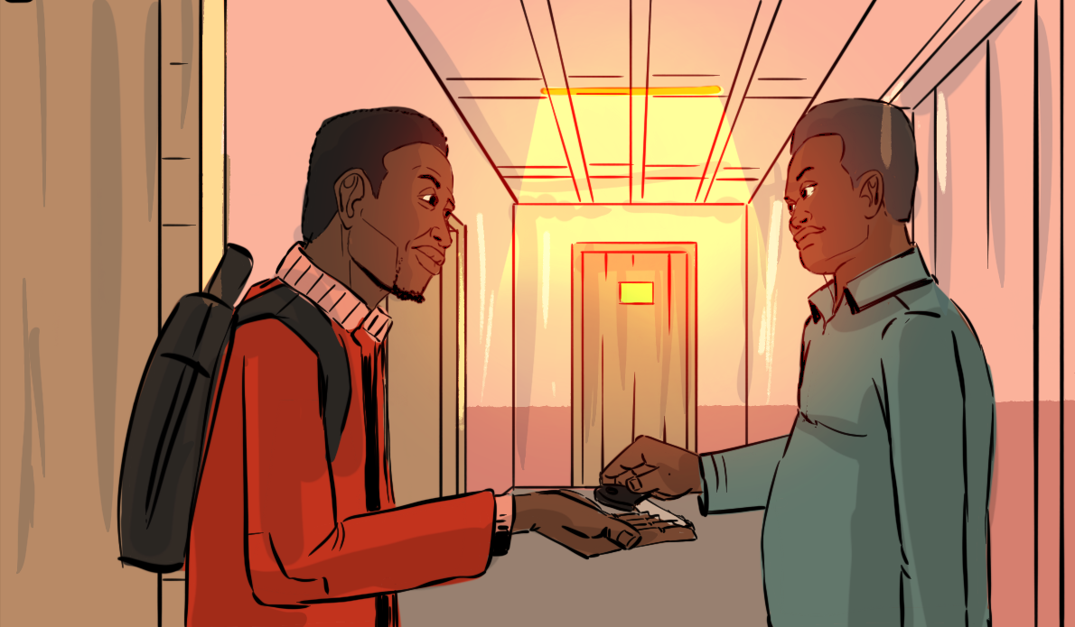 Kelvin heads out to find Sorie and tells him he needs to leave right away.
