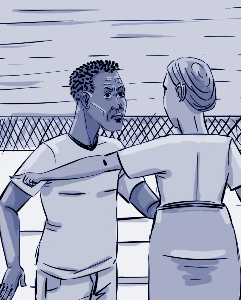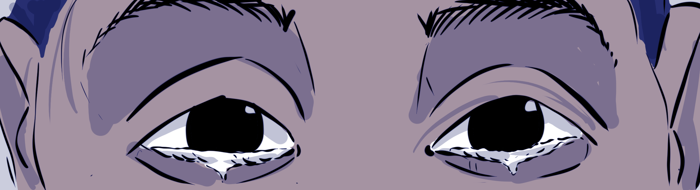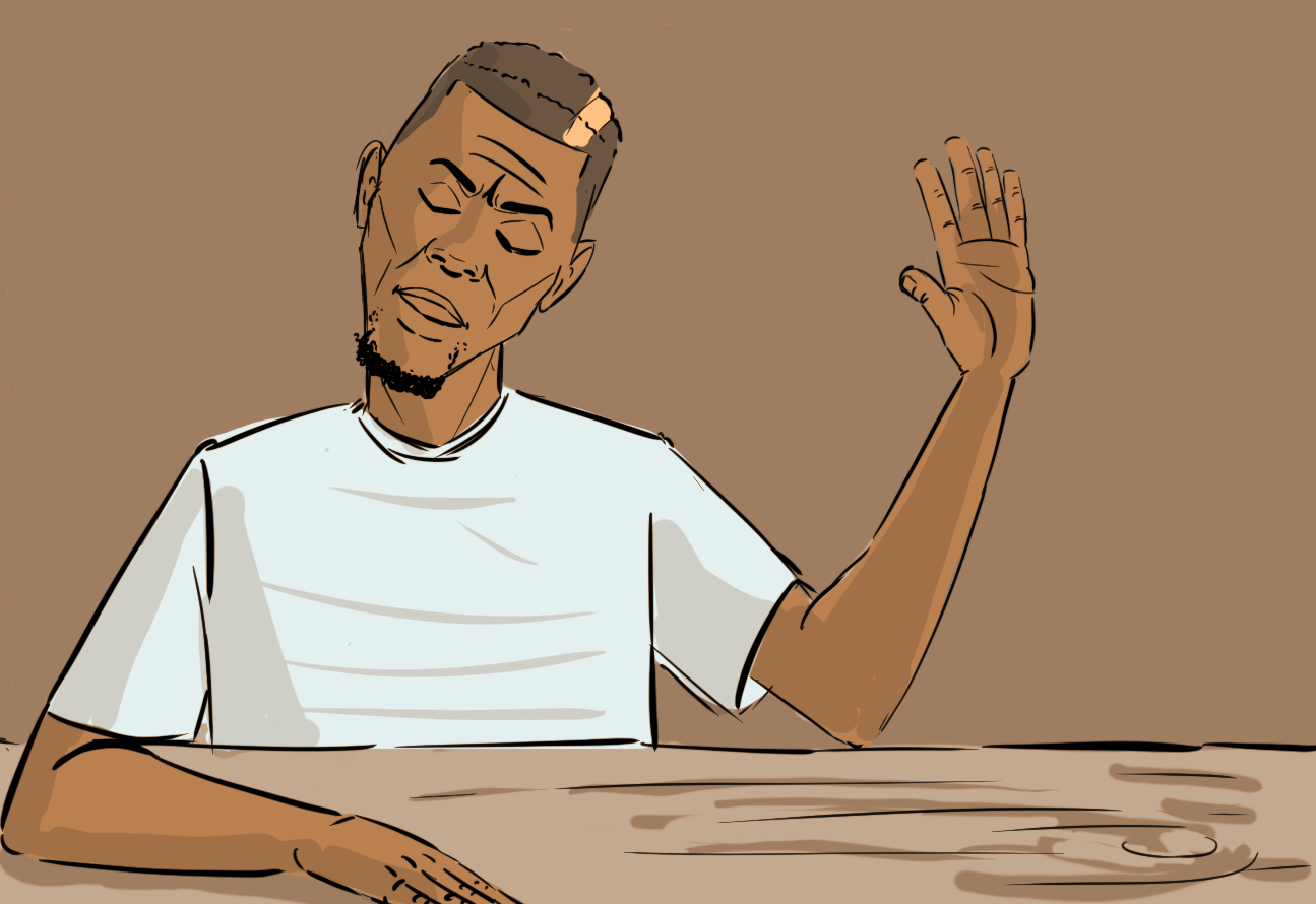 Kelvin makes it to safety, takes a deep breathe and he closes his eyes, we see blurry vision.