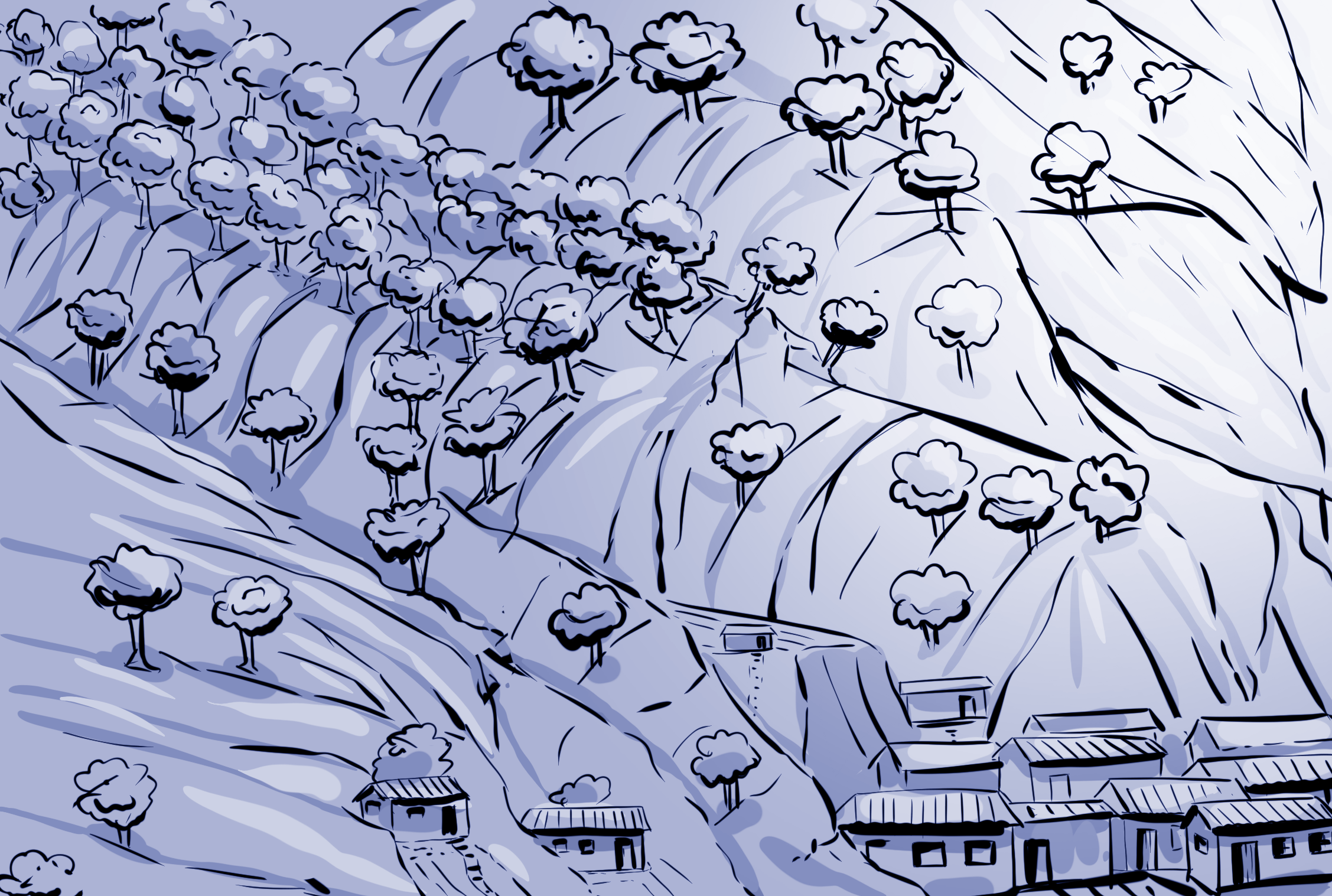 The rain keeps getting stronger and more mud descending in the hill-foot.