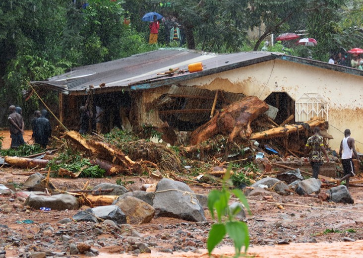 An almost collapsed building after the flood